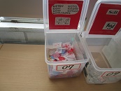 各学年の廊下やフリースペースにベルマーク収集箱が設置されています。また、1階生徒会コーナーには、テトラパック回収箱が設置されました。毎日、少しずつ収集される量が増えてきています。今後もご協力よろしくお願いします。