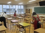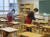 629日に引き続き、本日PTA研修委員の皆さんによる消毒作業を行ていただきました。前回同様、各教室の生徒の机・椅子を消毒液で拭いていただきました。新型コロナウィルス感染については現在も予断を許さない状況です。このごろ、朝の検温を忘れて登校する生徒が見られます。朝の検温、健康チェック、こまめな手洗いなど感染防止対策へのご協力を改めてよろしくお願いします。PTA研修委員の皆さんありがとうございました。