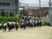 昨日までの雨が間違いと感じるような、よく晴れた一日でした。本日の運動場開放の学年は1年生です。昼放課には、この晴れ間を楽しむようにたくさんの生徒が運動場でサッカー、キャッチボール、鬼ごっこなどで体を動かしていました。また、体育では「目標のタイムは?」などお互いに声を掛け合いながら、50m走のタイムを計っていました。明日からはまた雨の日が続くそうです。つかの間の晴れの日を有効に使い、体を動かすようにしましょう。7月になり1年生が部活動に正式入部しました。技術の習得、体力の向上、そして粘り強い精神力が身に付くよう頑張ってください。