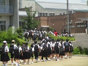 本日は、緊急時に生徒が地区ごとに安全に速やかに帰宅することを目的として緊急下校訓練を行いました。緊急下校訓練開始の放送とともに、住所班ごとに運動場に集まり、名簿の確認を行いました。その後各担当の先生の引率で下校を行いました。いつ発生するか分からない緊急時に備え、緊張感をもって整然と行うことができました。