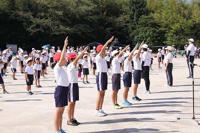 全校での準備運動は「にっしん体操」です。