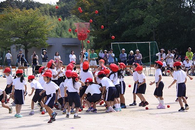 「チェッコリ」を踊った後で玉入れをしました