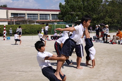 集団行動(隊列移動)、ボディパーカッション、そして組体操と、高学年にふさわしい整然とした、そして迫力あるものでした。