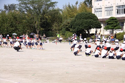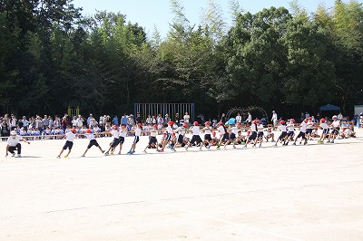 綱引きです。精一杯の力をふりしぼってがんばりました。