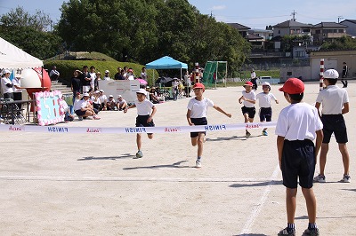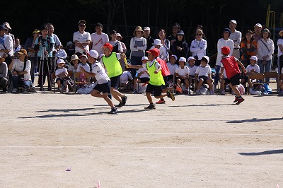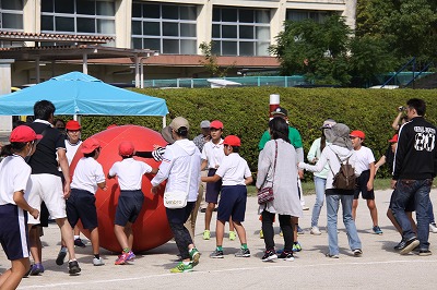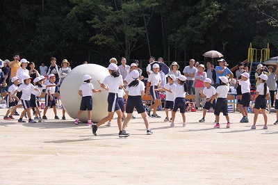 1回戦は児童だけで、2回戦は保護者のみなさんにも参加していただいて、いずれも大玉を転がして運ぶやり方で競いました。