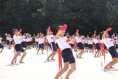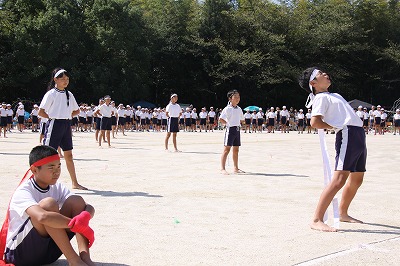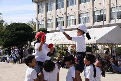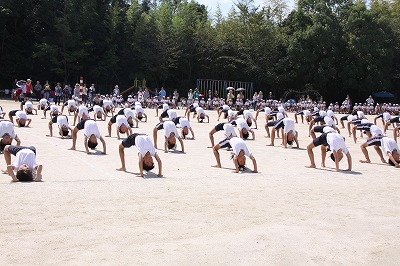 集団行動(隊列移動)、ボディパーカッション、そして組体操と、高学年にふさわしい整然とした、そして迫力あるものでした。