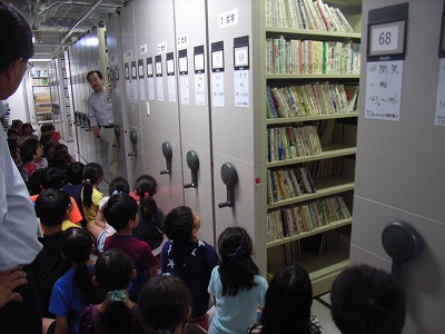 市図書館では説明を聞いた後、館内を見学しました。一般では入れない閉架書庫や、本を修理するところも見せていただきました。