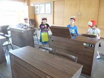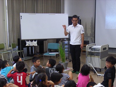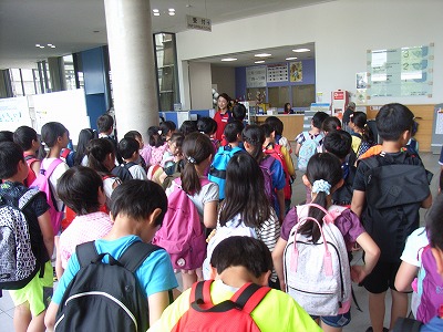市スポーツセンターでは説明を聞いた後、館内を見学しました。広ーい第1競技場やガラス張りのトレーニング室に興味ワクワクでした。他にも子どものための部屋があるなど、はじめて知ったこともたくさんありました。