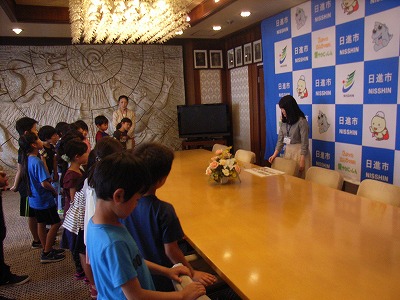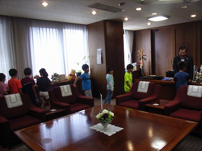 市役所では市長さんの部屋に案内していただき、一人ずつ言葉を交わして握手していただきました。