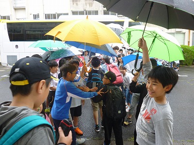 あいにくの雨天でしたが、木祖小5年生22名と校長先生はじめ4名の先生が来てくださいました。木祖村出発は6時!すごい!