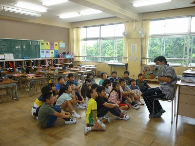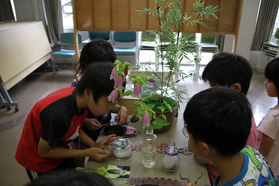 「折戸川にホタルを飛ばそう会」のみなさんに来ていただいて、ホタルの生態や、ゲンジボタルとヘイケボタルの見分け方など、いろいろなことを教えていただきました。実際にホタルが光る様子も観察することができました。