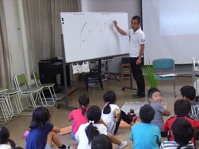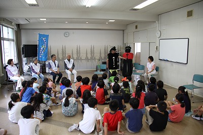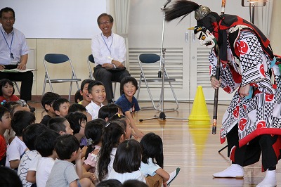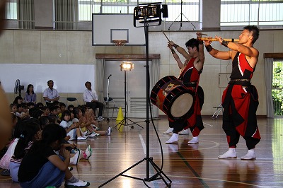 和太鼓の力強い響きだけでなく、篠笛、尺八、三味線の音色も楽しみことができました。また、鬼と天狗が登場し、力強い動きだけでなく、子どもたちのところまで来て滑稽な動きも見せてくれたりして楽しませてくれました。