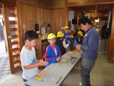 また、自分たちで選んだ体験(藍染め、紙すき、風車、こま絵付け、縄ない)と、はたおり体験(コースター作り)をしてきました。