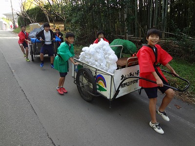 11月のハイランド白山幼稚園に続いて、北新田保育園に出向いて公演をしました。もちろん、徒歩・リヤカーでの移動です。