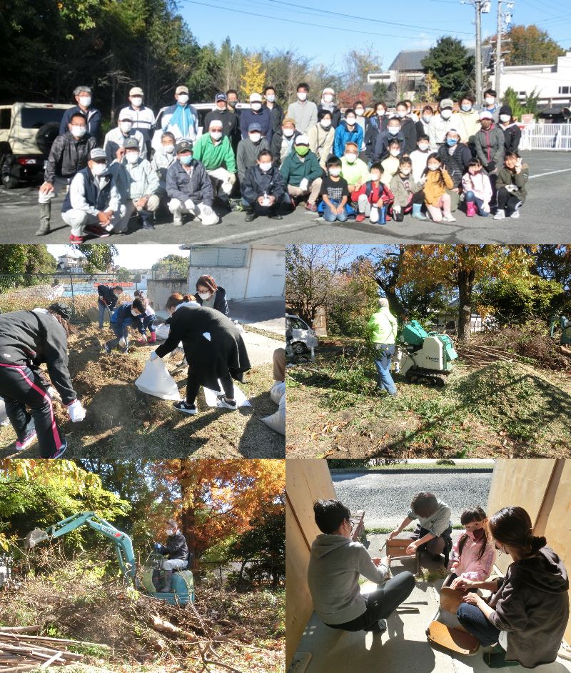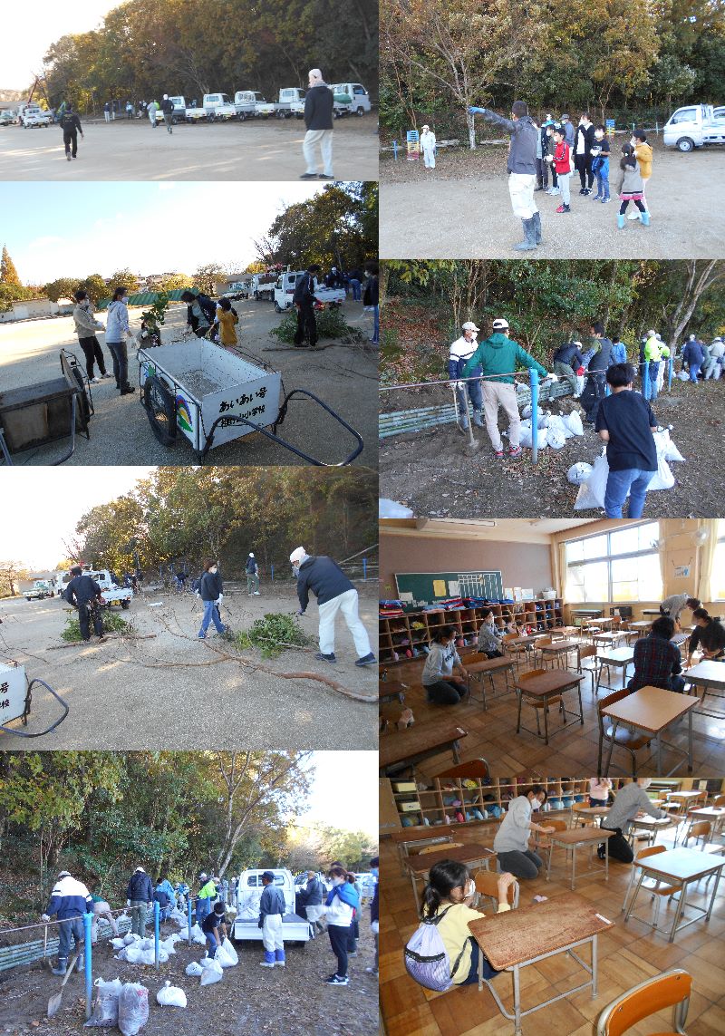 11月21日土曜日の朝、3連休にもかかわらず、相野山小にユンボを載せた大きなトラック1台、軽トラ約15台、乗用車が続々と集まってきました。