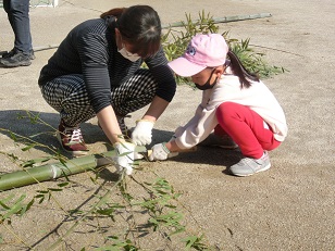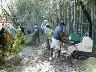 土嚢を作る、木を切る、枝を払う、運ぶ、くいを打つ、竹で柵を作る、土嚢を置く・・・等の作業を手分けして行いました。