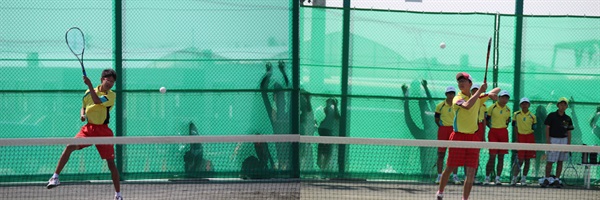 今、悔しくて「女子テニス部」が、学校に帰ってきてから練習しています。