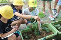 4年生で育てているヘチマに花が咲き、 実もなってきました。  そして、最近は、 草取りや水やりなどを自分から 進んで行ってくれる子も増えてきました。 毎日、観察や世話に来ている子の中には、 雄花や雌花の違いなど、 細かい点に気付くようになった子もいます。 主体的な行動ができるのは素晴らしいですね! これからもがんばりましょう。 |  |