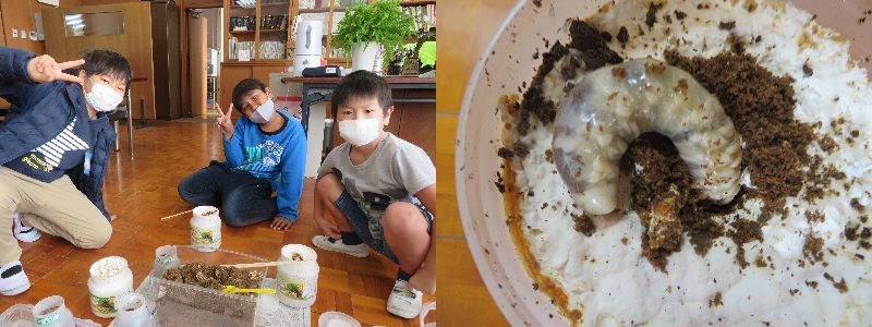 我々大人がネットモラルを意識して、子どもたちの手本にならなければなりませんね。 本日の「にこにこタイム(25分放課)」、3名の南っ子とオオクワガタの幼虫の引っ越しを行いました(11/27ブログ参照)。最初の菌糸瓶内の餌がほぼ食べ尽くされて手狭になってきたため、新しい大きな菌糸瓶に移し替えたのです。9月に産卵木を割って取り出した時には5ミリほどの大きさだった幼虫が、何十倍も巨大になっている姿を見て、子どもたちはびっくりしていました。