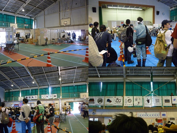 体育館にはいると「受付」があり、5名一組のグループに分けられました。