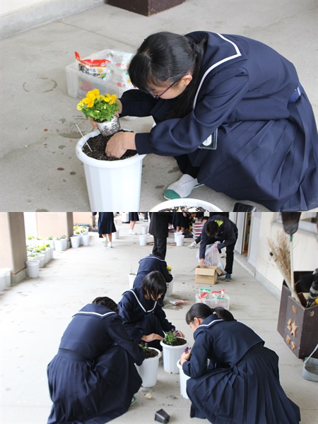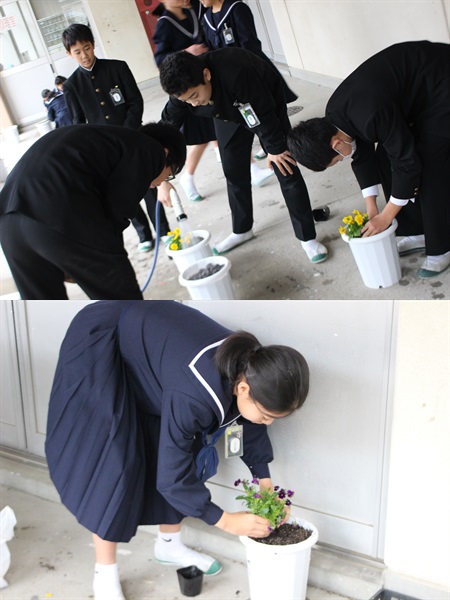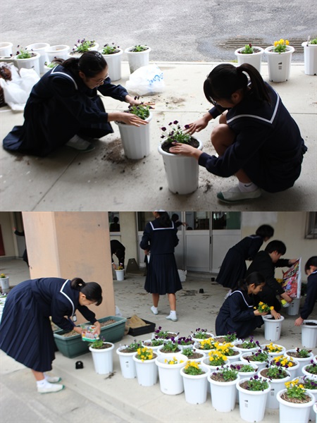 2年生の技術の授業で「ビオラ」を育てています。