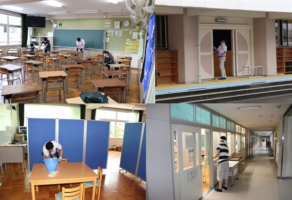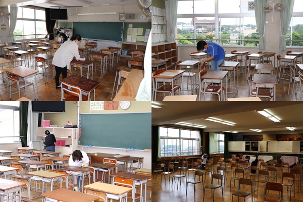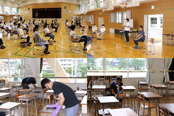 今回は、コロナウィルス対策として、校内の消毒作業をグループに分かれて行いました。教室やトイレなど、すみずみまで丁寧に作業をしていただきました。