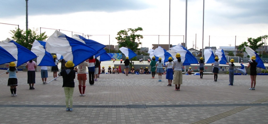 ハッピータイムに応援団は打合せや指示の出し方を練習します。