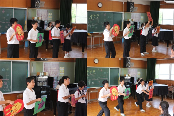 けやき組は、一学期間の音楽の授業の成果を、先生方の前で披露しました。