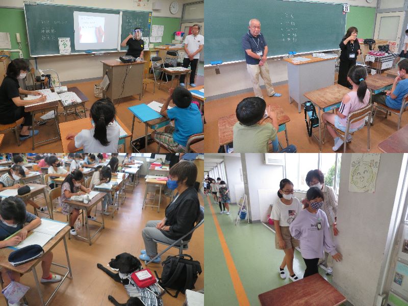 本日の1~2時限目、4年生の各教室で福祉実践教室を開催しました。4年生は「総合的な学習の時間」で“福祉”を中心に学習しており、毎年この時期に日進市社会福祉協議会の協力を得て開催しています。今年度は、新型コロナウイルス感染予防のため、例年より規模を縮小し、