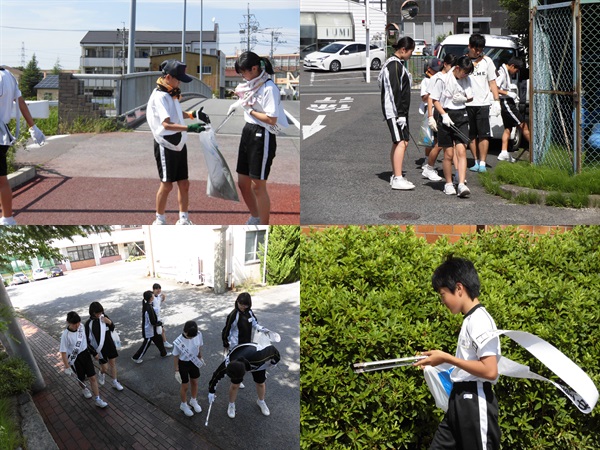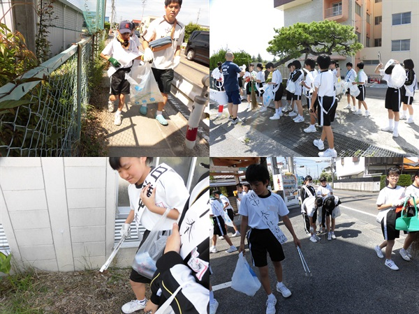 意外ときれいな市役所の周り、かなり汚れていた天白川の周り・・・暑さを吹き飛ばして生徒たちは元気よく、清掃ボランティアに参加しました!!