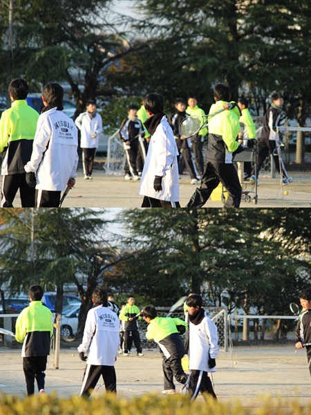 男子テニス部が、一生懸命「声を出して」練習を盛り上げていました。