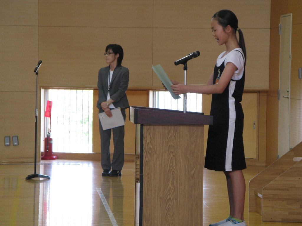 始業式の様子です。児童会代表児童として、塚本さんに2学期の抱負「挑戦」「全力」「笑顔」について話してもらいました。その後久しぶりに掃除をしました。