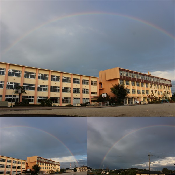 北の空には「すばらしい!」「とてもきれいな!」「半円状の」虹が2重に出ていました。