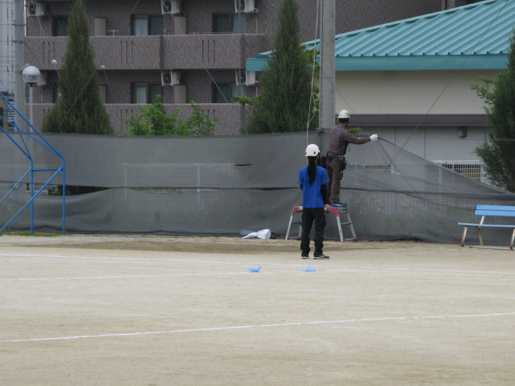昨年度、台風で裂けてしまったネットを新品にしてもらいました。10年以上使用してきたので、直しても直しても・・・これから、その他でも施設設備で修繕が必要な箇所が増えると思いますが、大切に使いたいと思います。