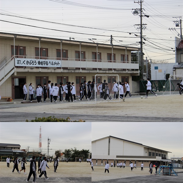 中学校の校庭とは思えない人数の子どもたちが、運動場で遊んでいます。