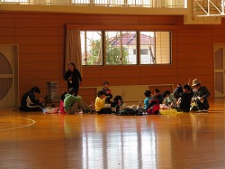 昼食は下の写真のようにグループに分かれて食べていました。朝方はとても寒かったのですが、体育館もお昼が近づくにつれ、太陽の光で少し温かくなり、また、暖房器具も準備し児童生徒の健康面にも配慮していました。(けやき組の先生方、校務主任、ありがとうございます。)