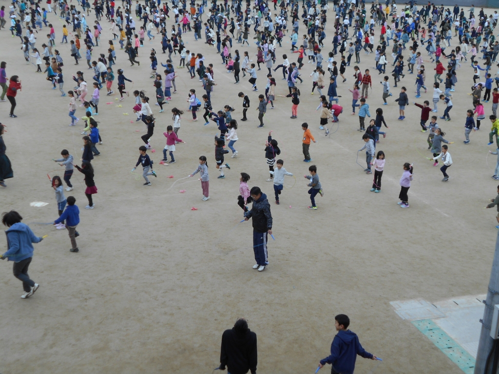 本日からなわとびで体力づくりを始めました。これをきっかけに、放課にもとんでいるので、赤池の子はなわとび上手になっていきます。皆が教室へ戻った後、美化委員の子達が砂を運動場へもどしてくれました。