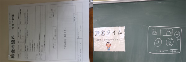 しかし、できる限り「声を出さずに」給食の準備、会食、片付けを行いたい