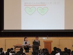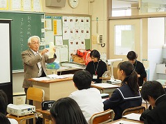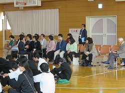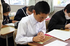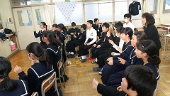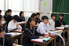 小学校でも体験を通して学習していますが、中学校ではより深い学習になるようにさまざまな体験が行われます。全体講義の中では、障害の有無に関係なく、ともに助け合って支え合うことが大切です。また、講師の先生が人権のことにも少しふれて話してくださりました。