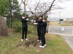 そこで、カイズカイブキを伐採し、その体育館の並びに「3本」