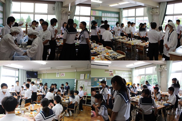本日、給食の時間を使って「縦割り団 交流給食」を行いました。