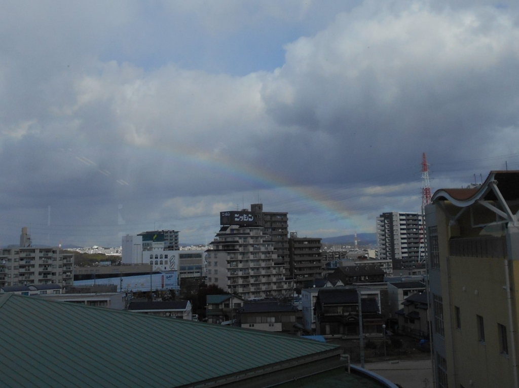 その流れで5階へ上がったら、虹を発見して喜ぶ6年生の子が数名。その子たちが「虹の写真HPにあげたら?」「うちのお母さん、読んでるよ!」なんとうれしい!カウンタが一日10くらいしか動かないときもあるのに。うれしいことが続きました。