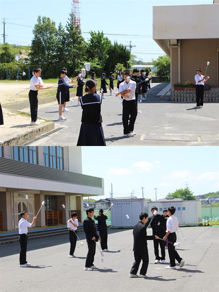 その横で、2年生のトーチトワリングのグループが練習をしていました。