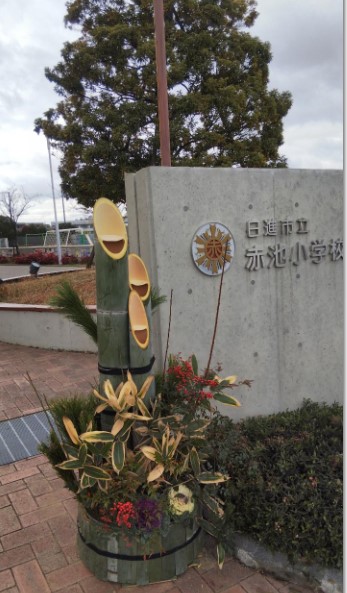今年も赤池小おやじ友の会、家庭教育推進委員会、赤池小PTAの皆様が門松を設置してくださいました。ありがとうございます。とってもすてきです。