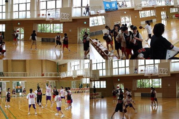 夕方、体育館で行われていた「バスケ部女子」の練習試合を応援しました。