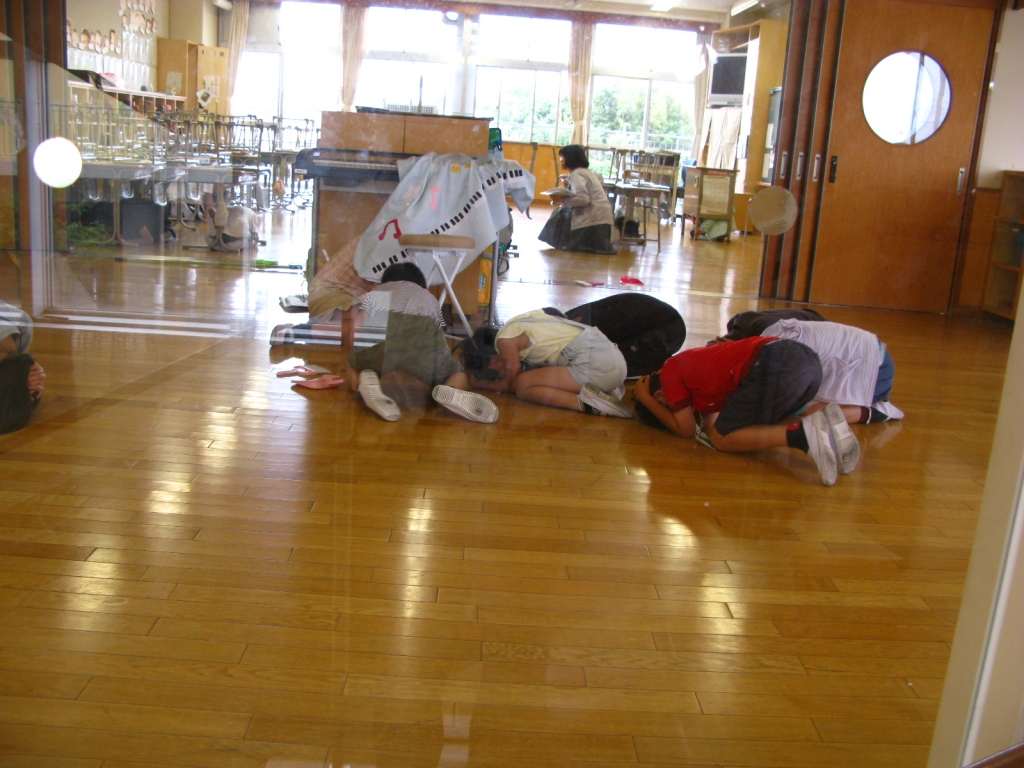 5月最後の日の画像です。左は避難訓練の様子です。掃除時間に地震が起きたことを想定して実施しました。6年生児童が、低学年の児童を守りながら、床に伏せていたという話を聞きました。自然にとった行動のようです。驚きました。