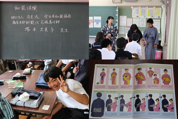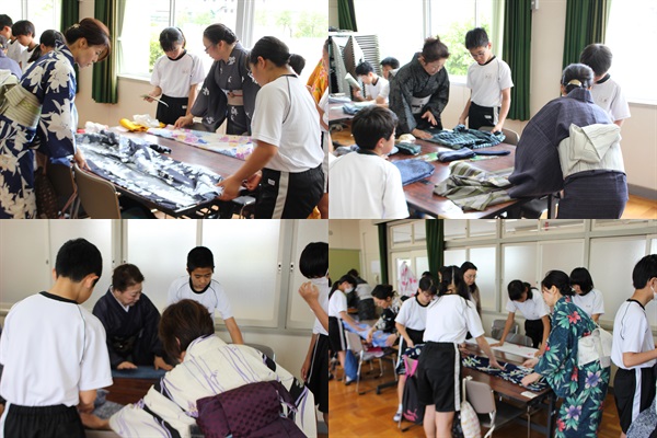 毎年恒例の家庭科授業で行う「和装体験」が始まっていました。