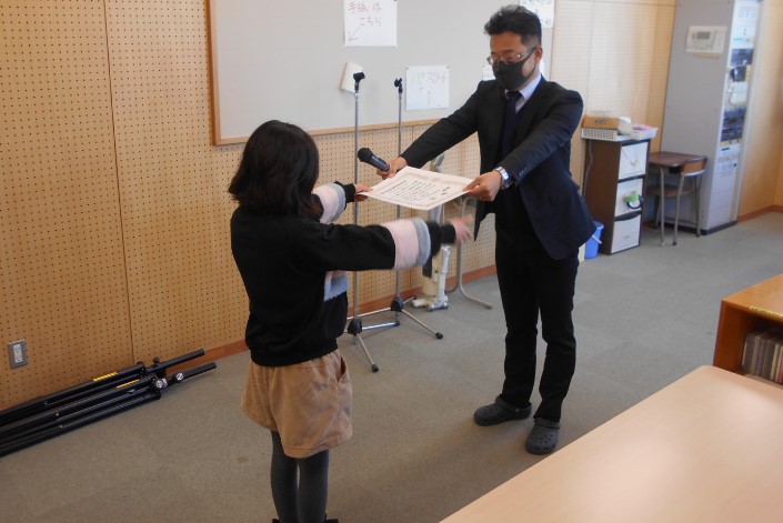 本日の放送朝会で青少年読書感想文愛知県コンクール、愛知地区読書感想画コンクール、日進市伸びゆく子教育作品展の表彰を行いました。表彰の多くは代表者に渡す形で行いました。その後、校長からの話、令和3年度前期児童会役員選挙公示と続きます。