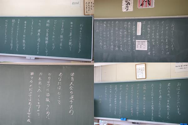朝一番、黒板などの先生方からのメッセージを読んで、