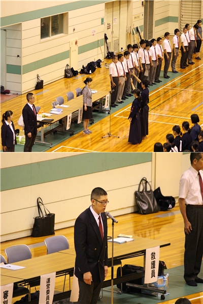 開会式では、本校剣道部顧問の藤田先生が審判長として注意をされました。